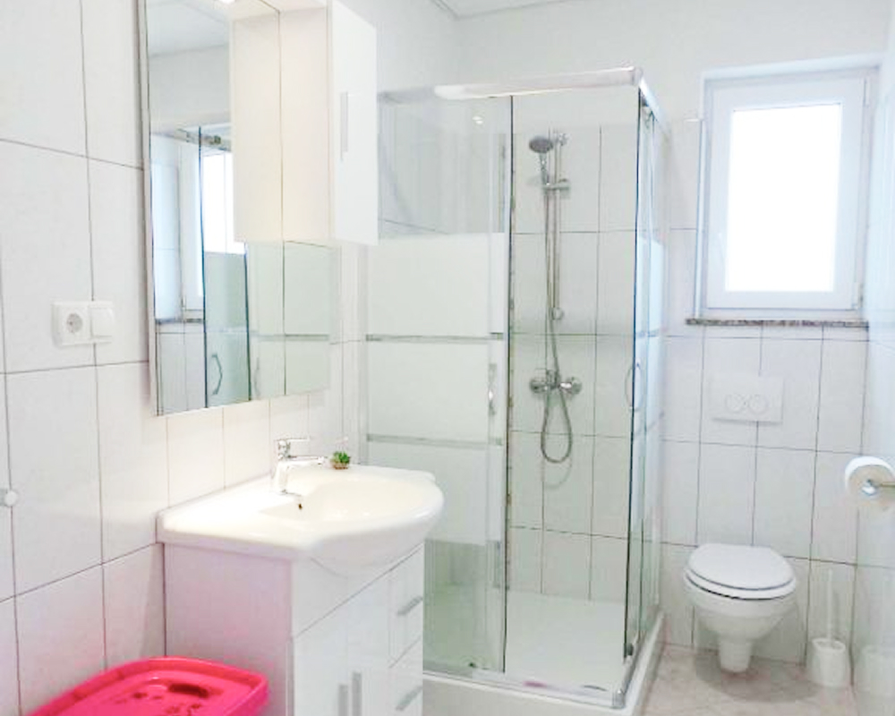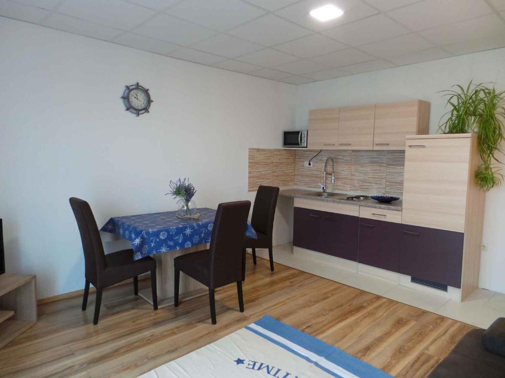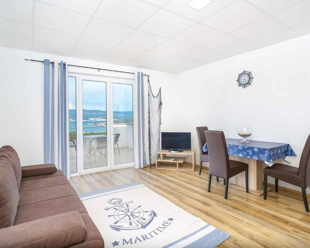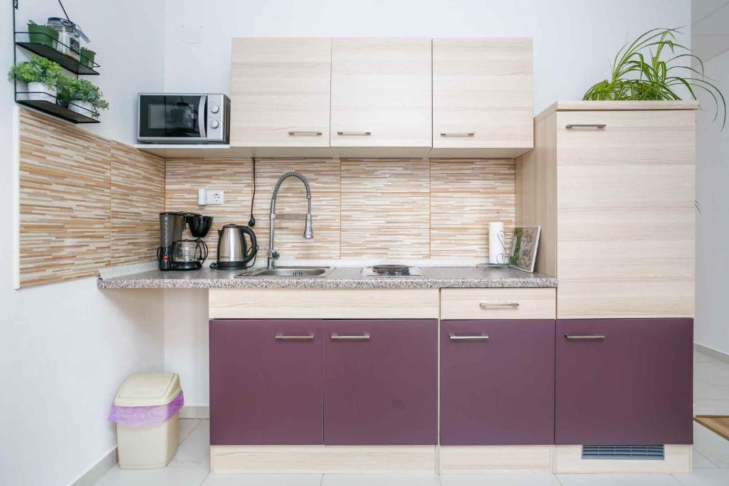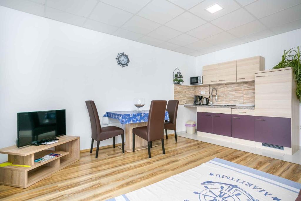 This cozy 55 m² apartment offers one separate bedroom featuring a queen bed and a living room with a sofa bed. It includes a private bathroom with a shower and kitchenette with a stovetop, refrigerator, microwave, and coffee maker.